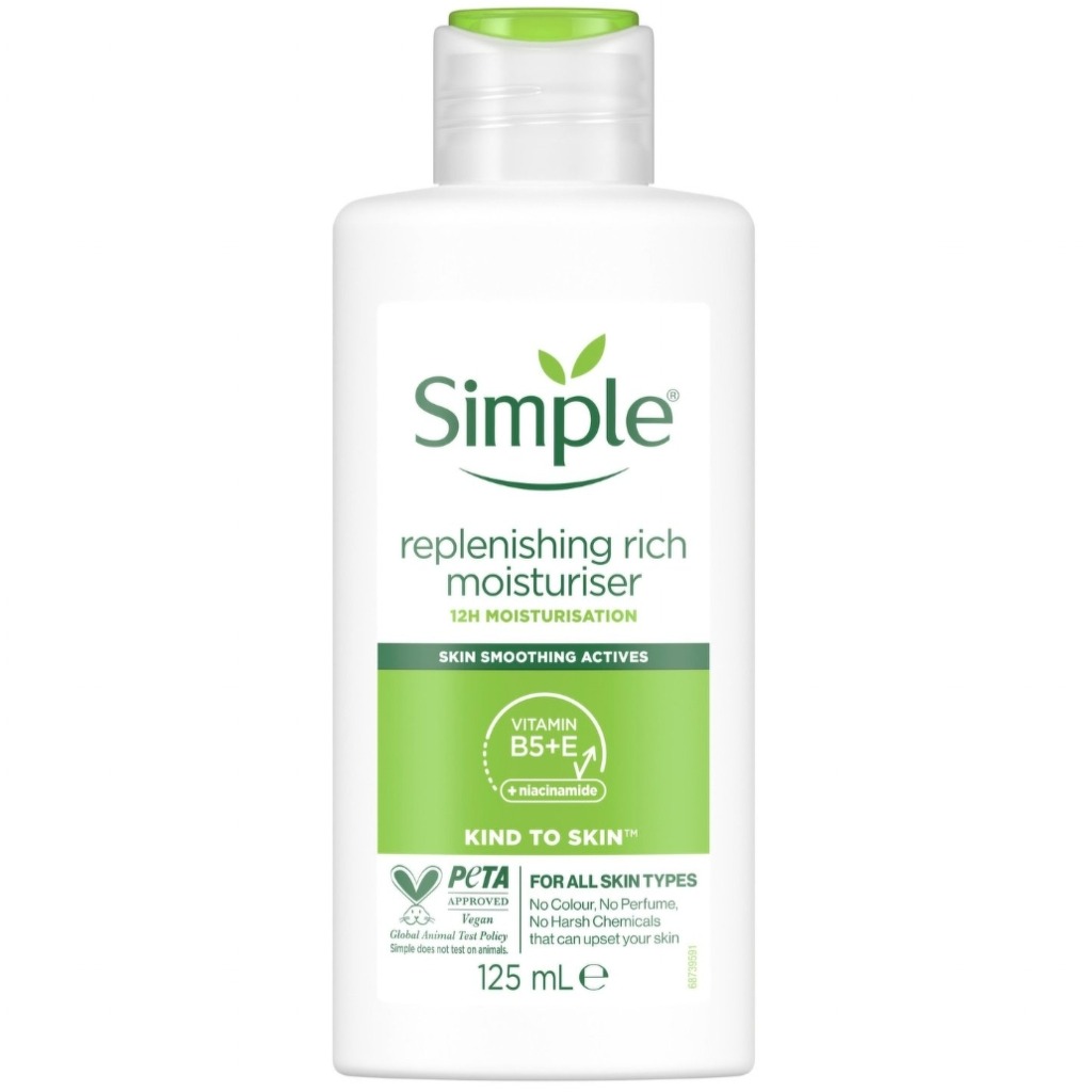 کرم مرطوب کننده آبرسان سیمپل مدل ریچ (Simple Rich Moisture Cream) یک کرم مرطوبکننده غنی است که برای پوستهای خشک و حساس طراحی شده است. این کرم با فرمولاسیون خاص خود، به سرعت جذب پوست شده و رطوبت را به لایههای عمقی پوست منتقل میکند. همچنین این محصول فاقد هرگونه مواد شیمیایی مضر مانند پارابنها، رنگها و عطرهای مصنوعی است که ممکن است باعث تحریک پوستهای حساس شود.
